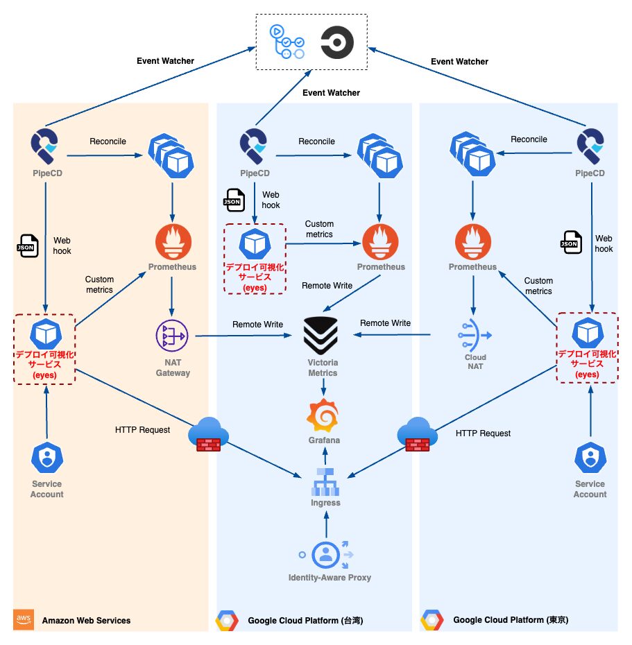 - 台湾リージョンのみに eyes を配置した場合、リージョン障害が発生すると、その間他リージョンで稼働するサービスのデプロイ情報も一切収集できなくなる