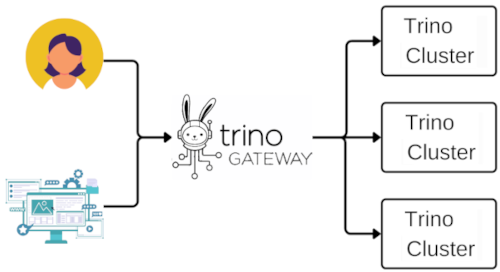 Trino-Gateway は複数の Trino クラスタ向けのロードバランサー、プロキシサーバー、ルーティングゲートウェイであり、これを用いるとクラスタを透過的に増加可能で、自動ルーティングでユーザーは単一URLに接続すればクラスタにアクセスできるので便利なサービスです。