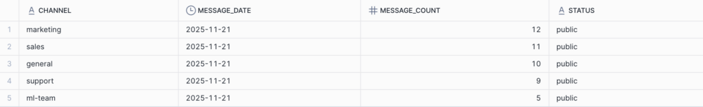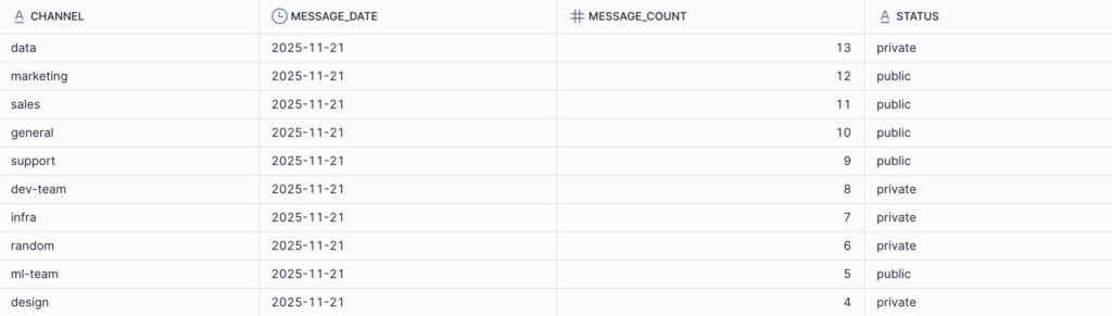 今回は、以下のようなチャンネルごとのメッセージ数を日次で集計する簡易的なincremental(増分)モデルを作成します。