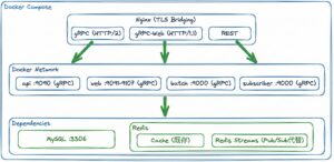 Minikube環境ではEnvoyがこれらのルーティングを処理していましたが、Docker Compose環境ではNginxで実現する必要がありました。