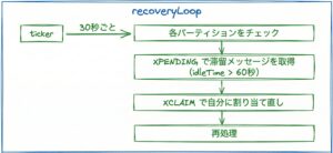 これを解決するために、バックグラウンドで滞留メッセージを回収するrecoveryLoopを実装しています。