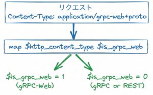 この設定で、Content-Type: application/grpc-webを含むリクエストは$is_grpc_web = 1、それ以外は$is_grpc_web = 0になります。