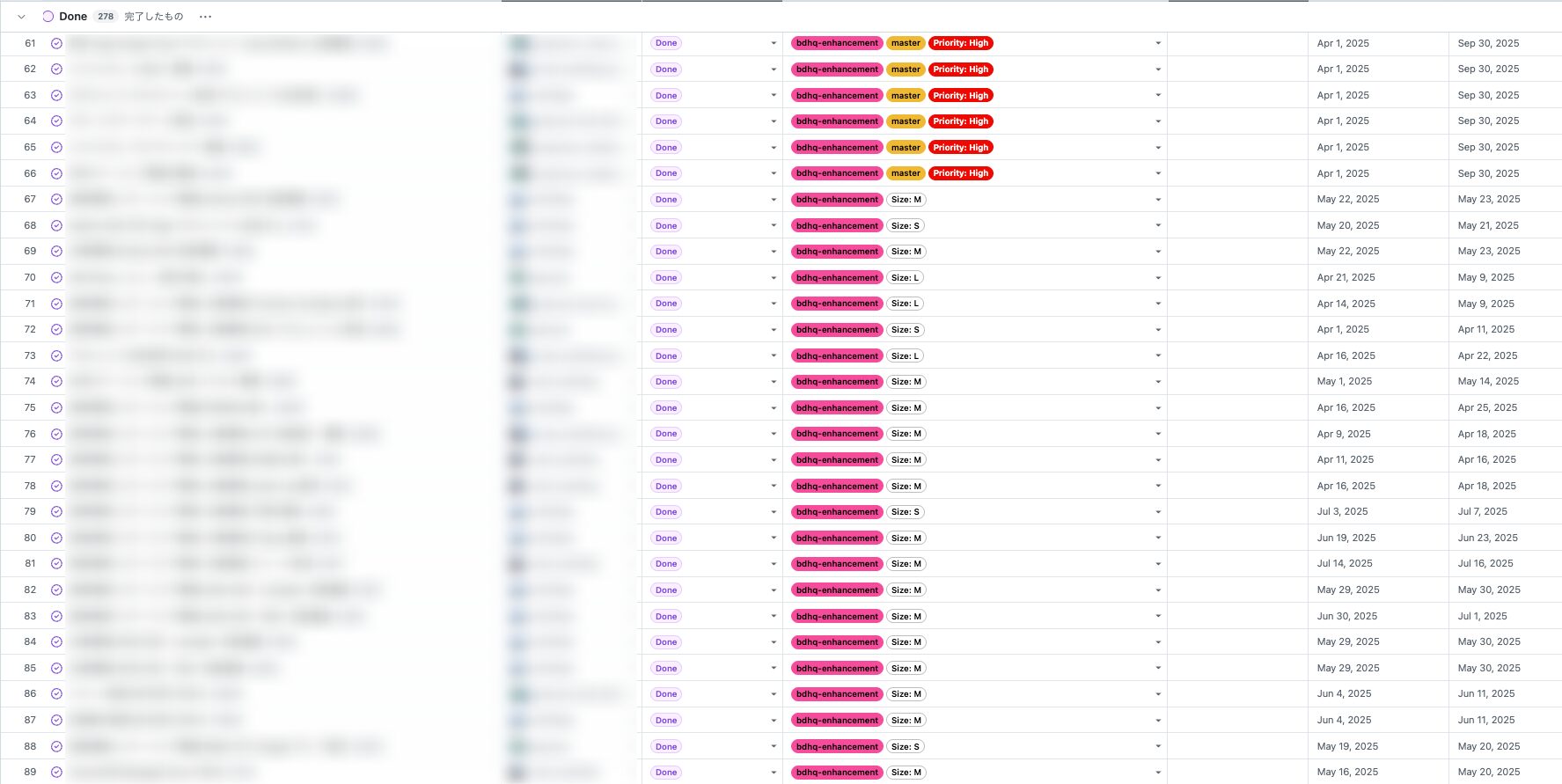 これらの Issue には優先度や紐付く親 Issue を示すラベルを付与し、依存関係や遅延リスクを一目で把握できるようにしました。