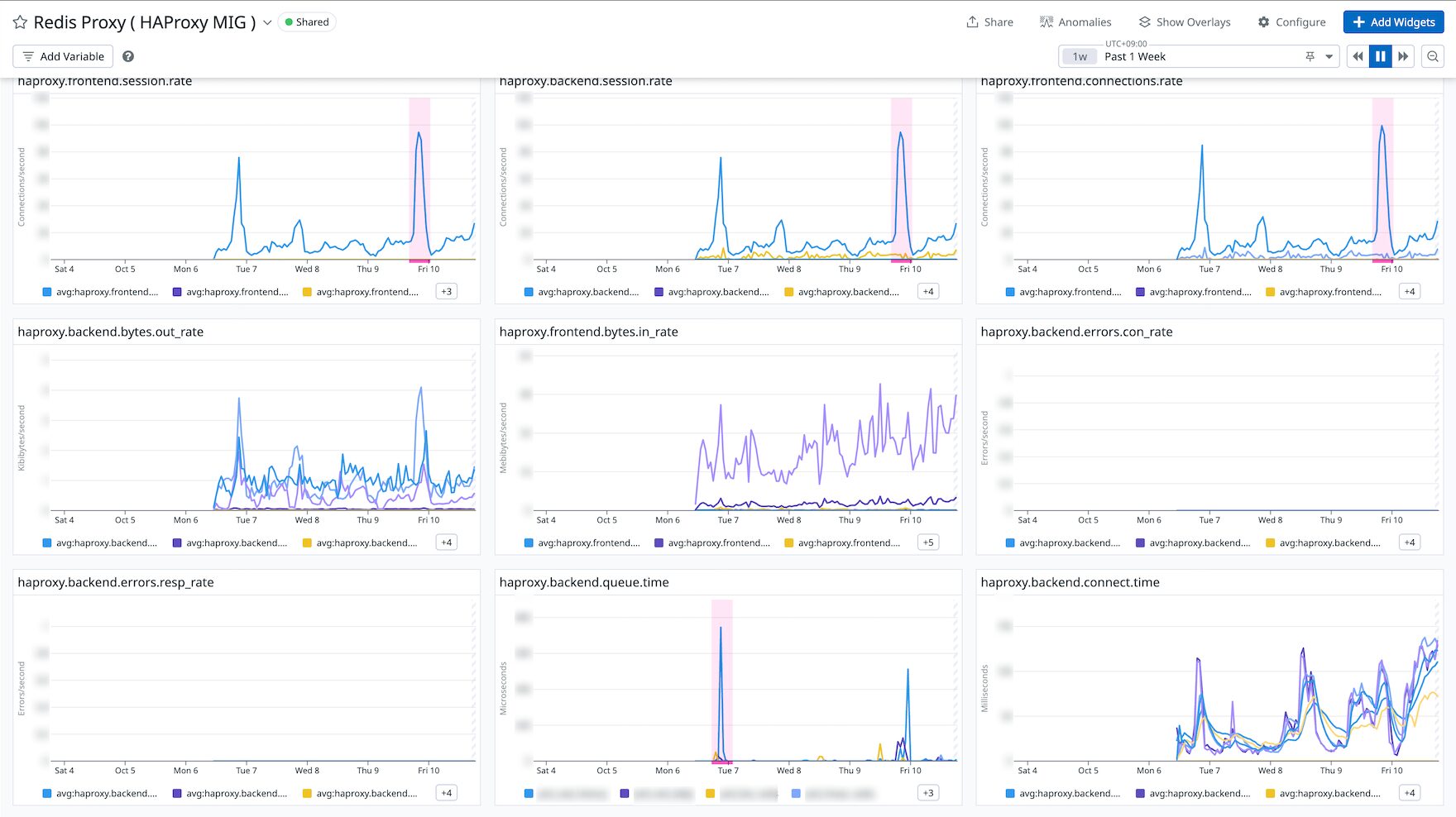また、構築した TCP Proxy が移行期間中のボトルネックとならないよう、Datadog の HAProxy Integration を用いたモニタリング環境を整備しました。これにより、セッションレートや接続エラー、レイテンシ等をリアルタイムに監視し、プロキシ層の健全性を常に担保する体制を整えました。