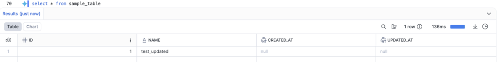 UPDATE sample_table SET name = 'test_updated' WHERE id = 1;