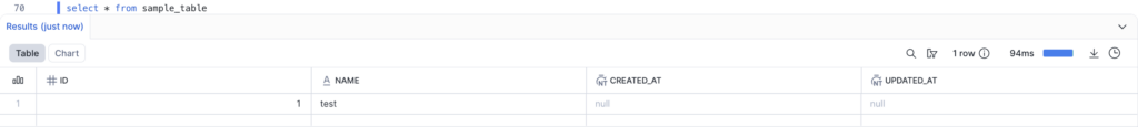 INSERT INTO sample_table (id, name) VALUES (1, 'test');