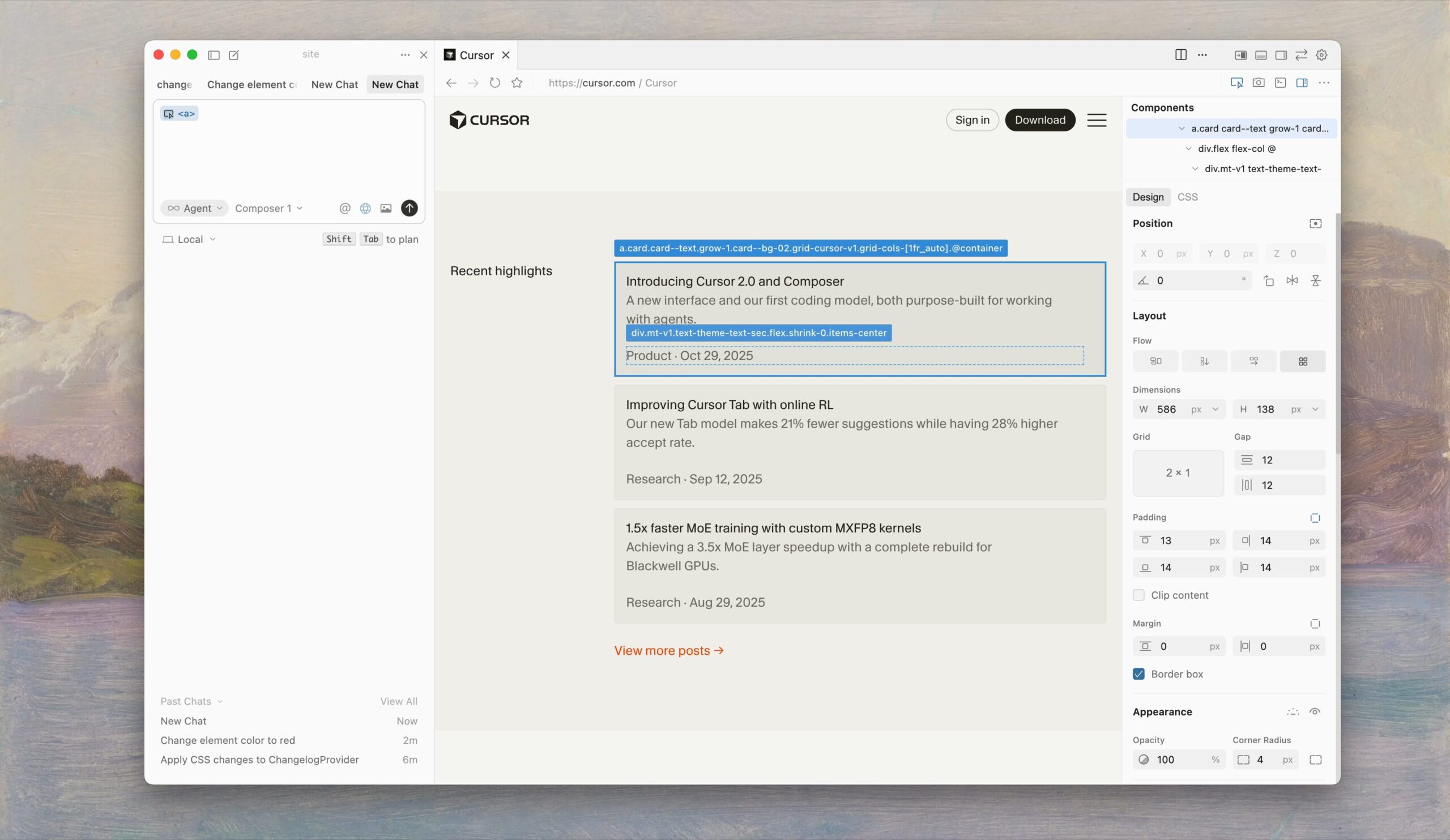 その後しばらくして、AI活用が進む中でCursorのVisualEditorがリリースされたという報が届きます。