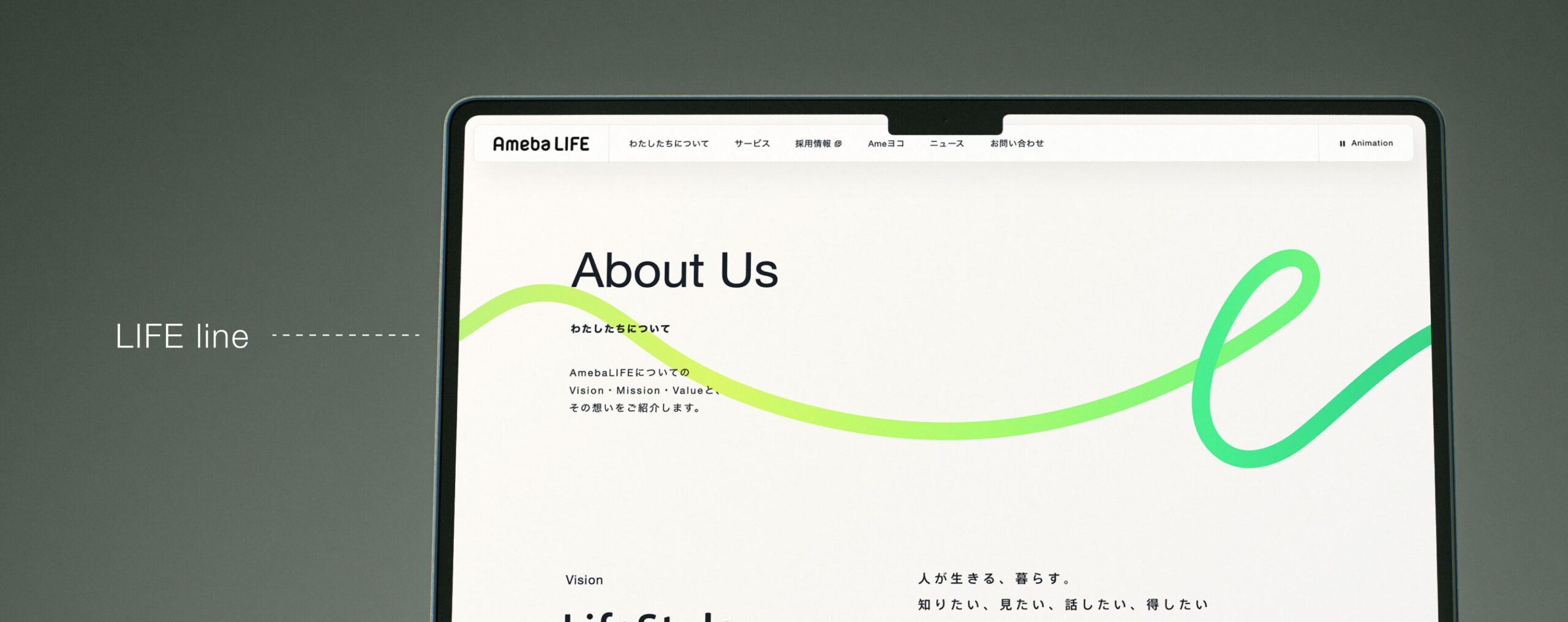 また、About Usページのメインビジュアルでも使われているラインのアニメーションでも、デザイナーならではの意地を詰め込みました。